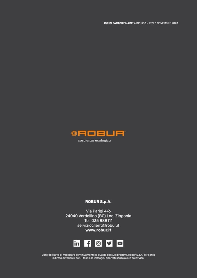 Con l’obiettivo di migliorare continuamente la qualità dei suoi prodotti, Robur S.p.A. si riserva