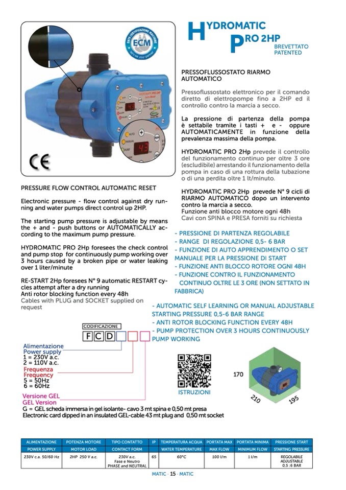 HYDROMATIC PRO 2Hp prevede il controllo
