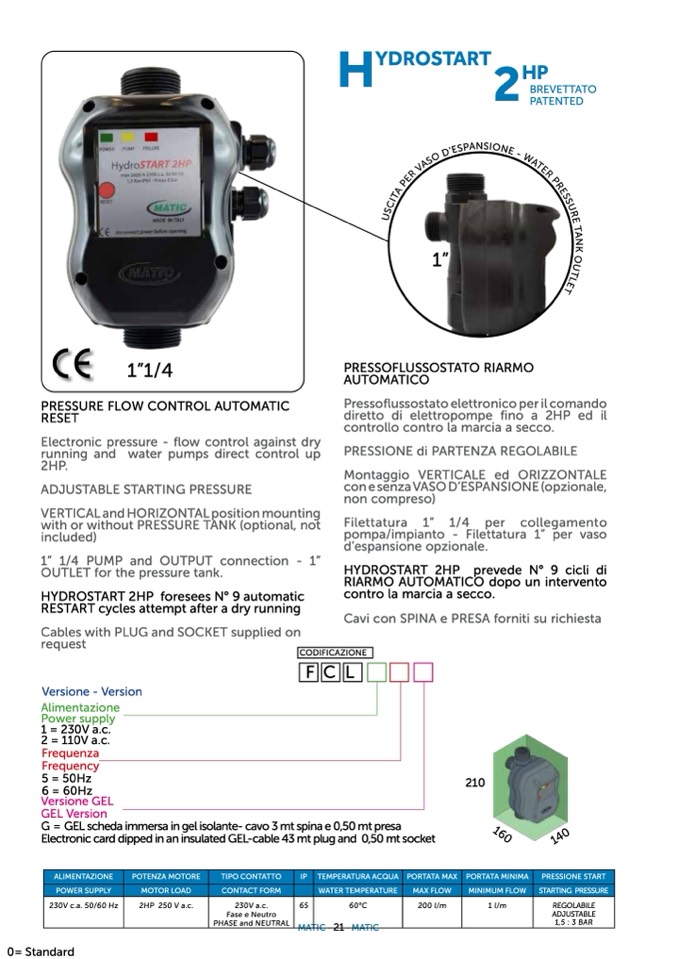 1” 1/4 PUMP and OUTPUT connection - 1”
