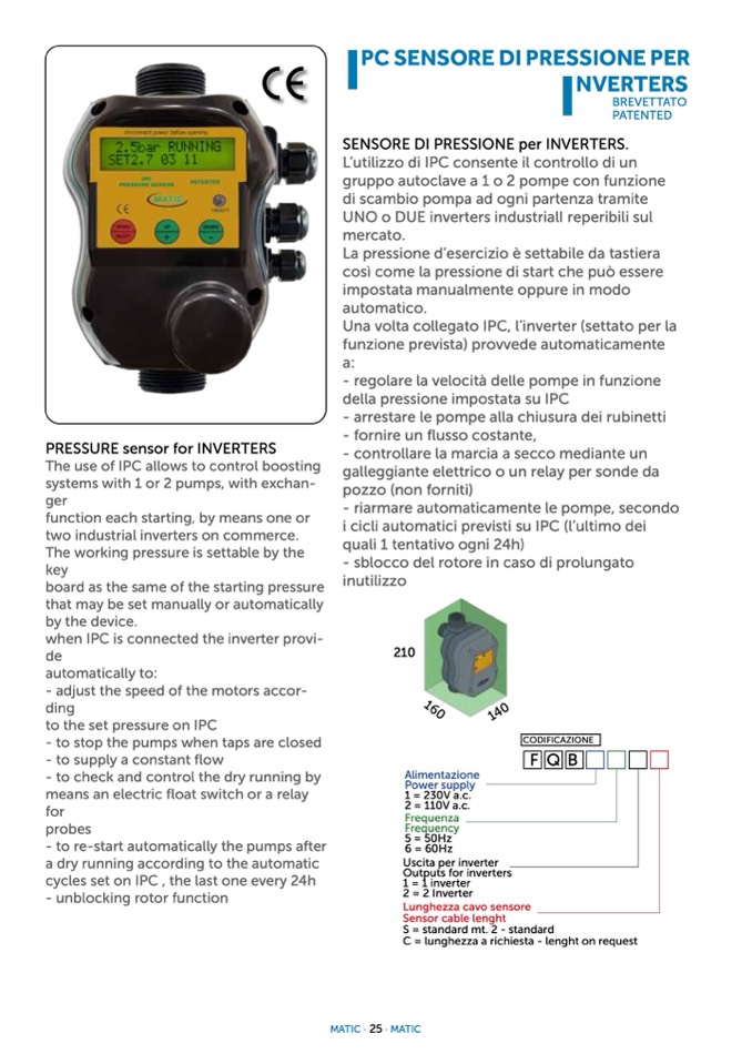 SENSORE DI PRESSIONE per INVERTERS.