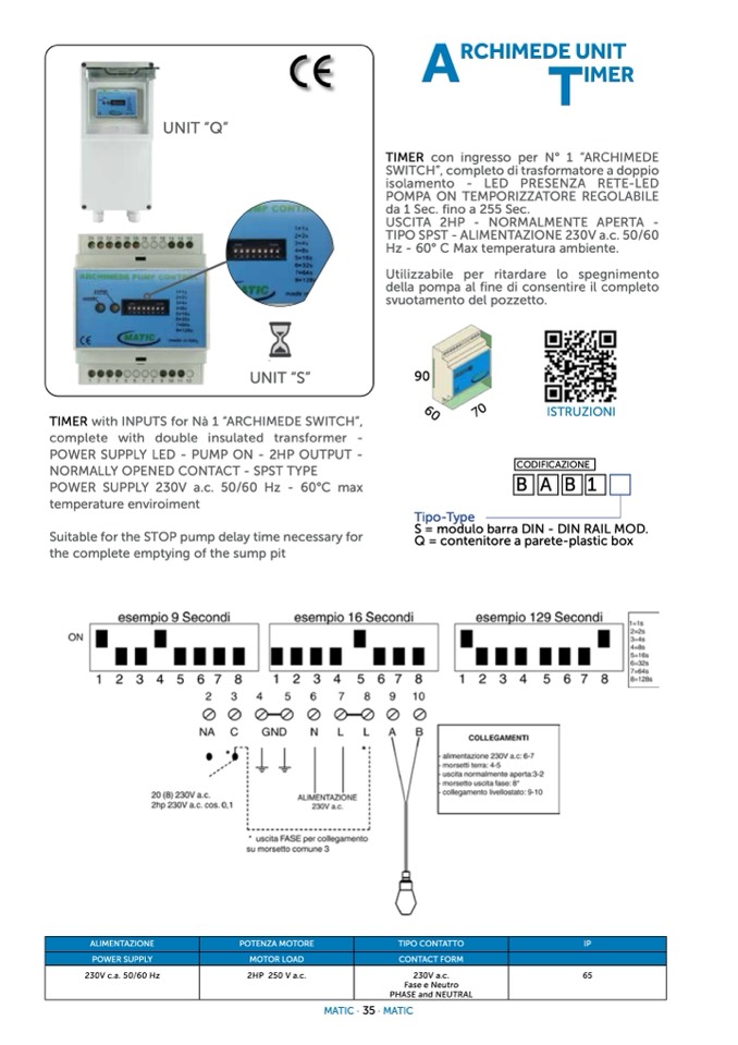 TIMER with INPUTS for Nà 1 “ARCHIMEDE SWITCH”,