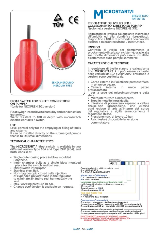 FLOAT SWITCH FOR DIRECT CONNECTION