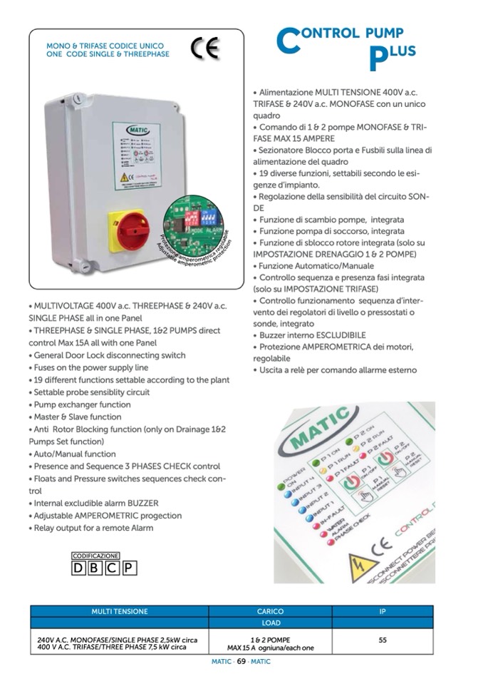 • Comando di 1 & 2 pompe MONOFASE & TRI-