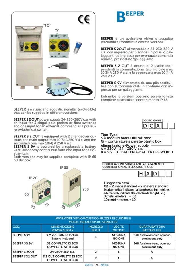 BEEPER S 2 OUT power supply 24-230-380V c.a. with