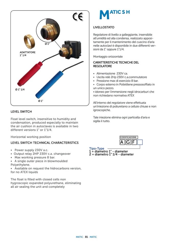 LEVEL SWITCH TECHNICAL CHARACTERISTICS