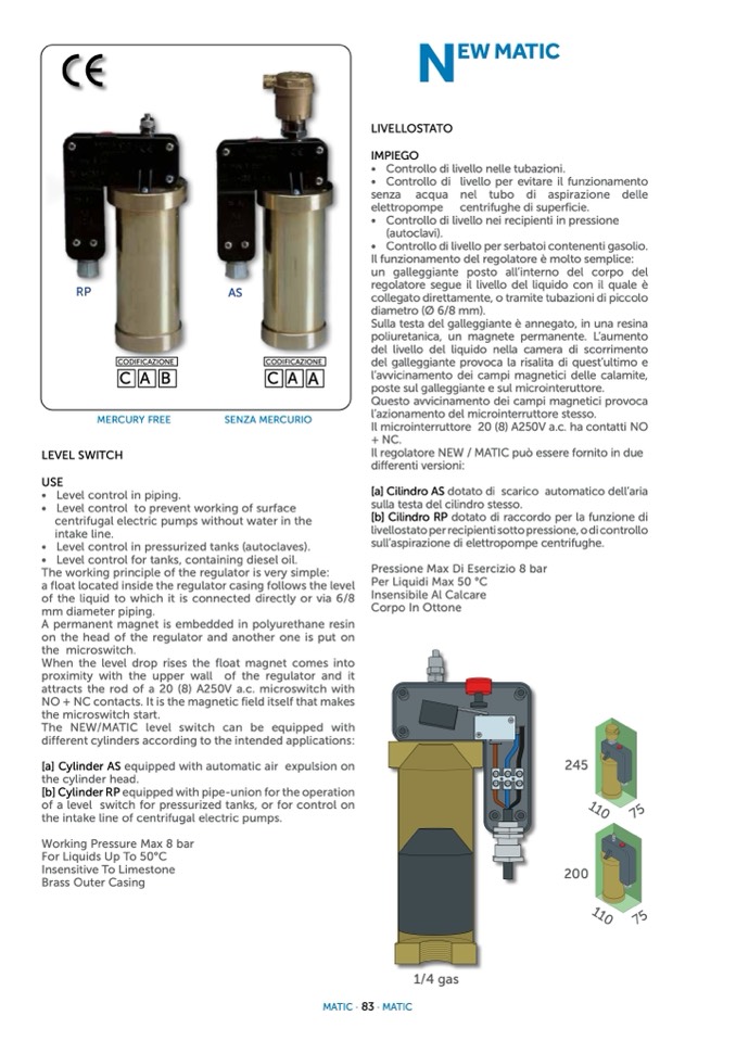 The NEW/MATIC level switch can be equipped with