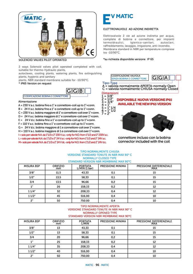 I = solo per valvole N.A. da 1”1/2 e 2” 230 V a.c.-only for N.O. from 1”1/2 and 2” 230V a.c.