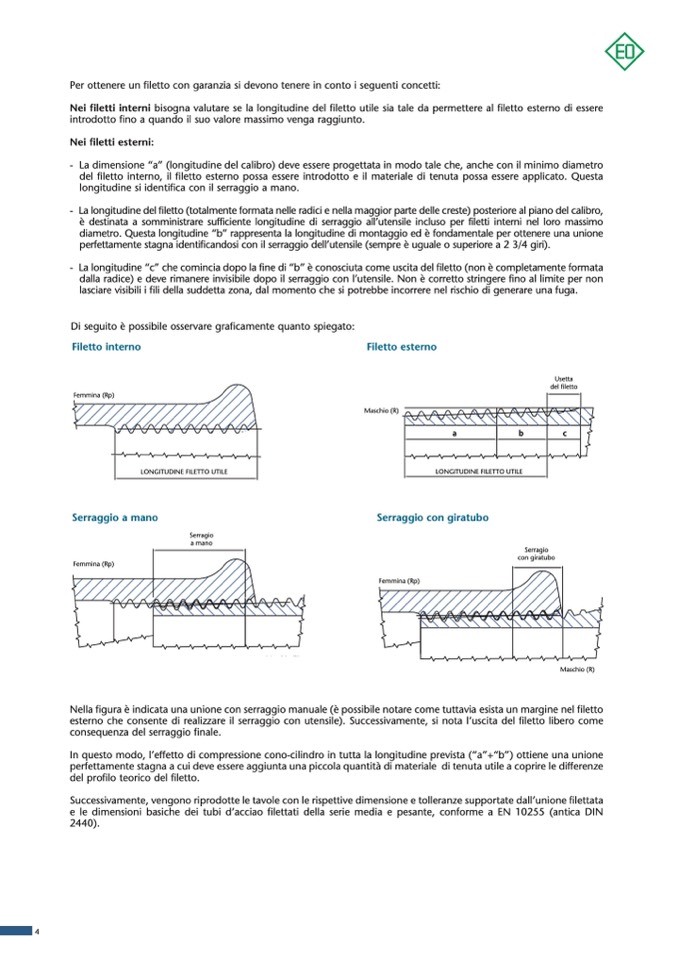 del filetto interno, il filetto esterno possa essere introdotto e il materiale di tenuta possa essere applicato. Questa