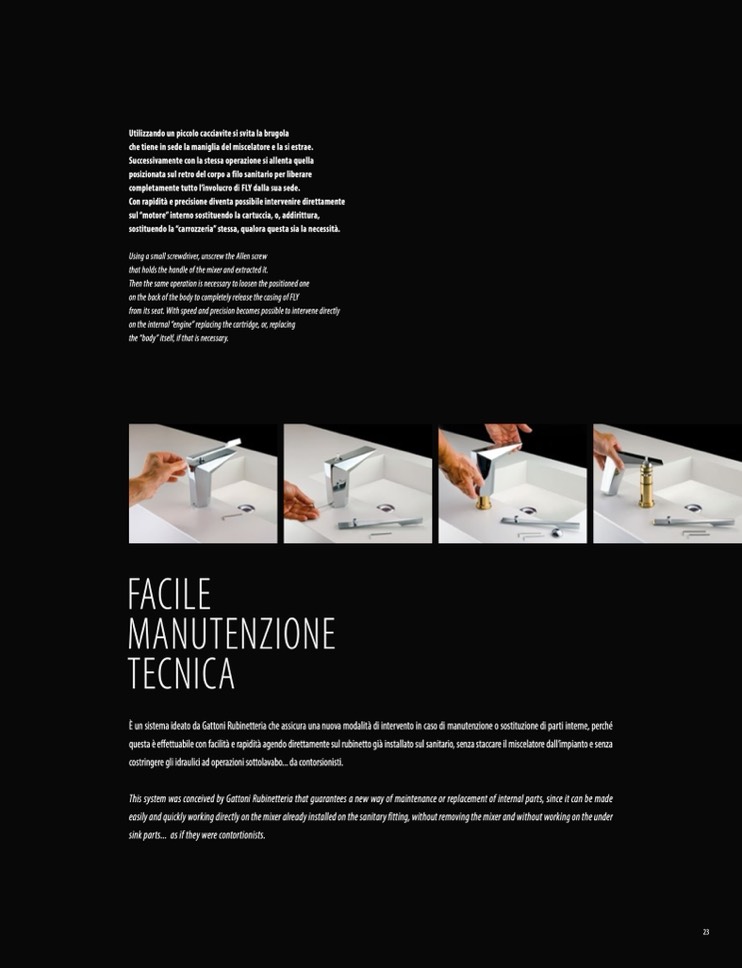 This system was conceived by Gattoni Rubinetteria that guarantees a new way of maintenance or replacement of internal parts, since it can be made