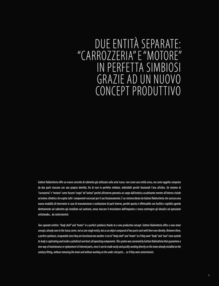 Two separate entities: “body shell” and “motor” in a perfect symbiosis thanks to a new production concept. Gattoni Rubinetteria offers a new mixer