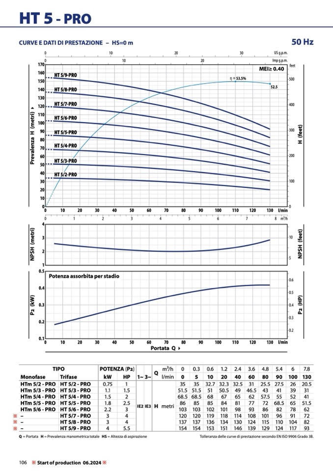 Tolleranza delle curve di prestazione secondo EN ISO 9906 Grado 3B.