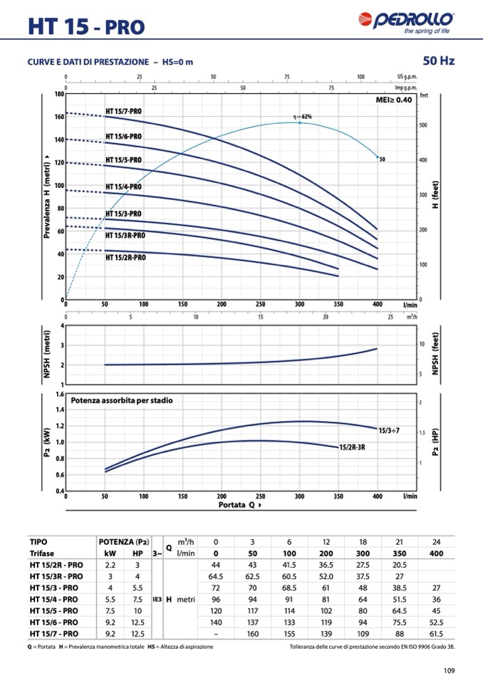 Tolleranza delle curve di prestazione secondo EN ISO 9906 Grado 3B.