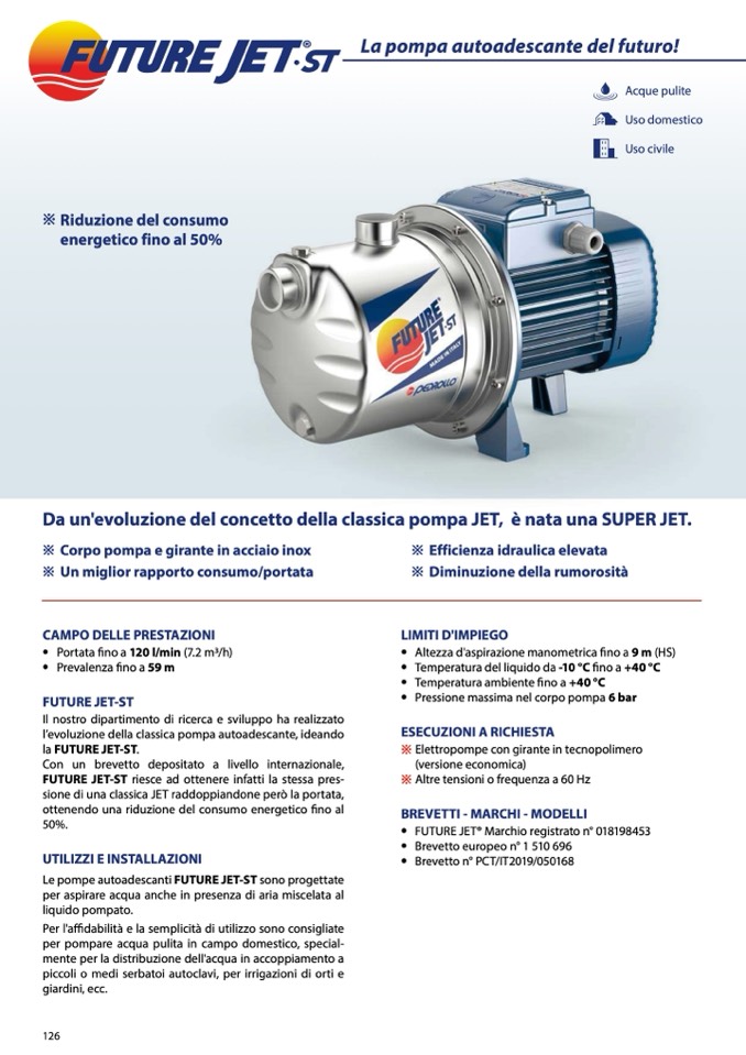 Le pompe autoadescanti FUTURE JET-ST sono progettate
