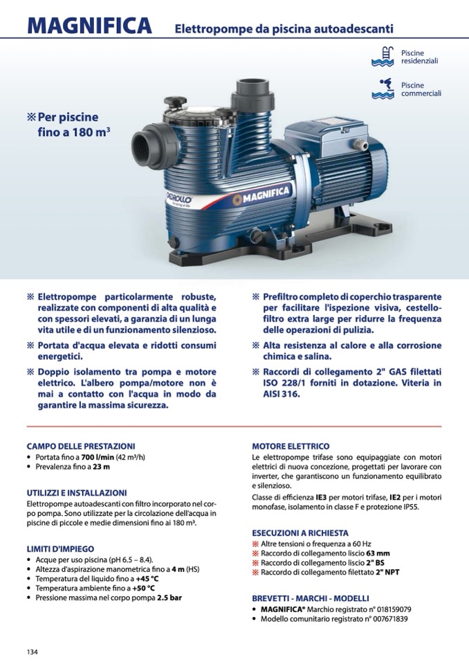 piscine di piccole e medie dimensioni fino ai 180 m3.