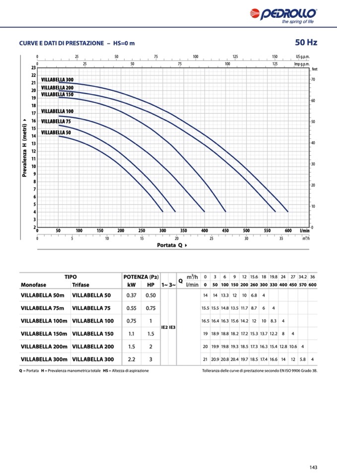Tolleranza delle curve di prestazione secondo EN ISO 9906 Grado 3B.