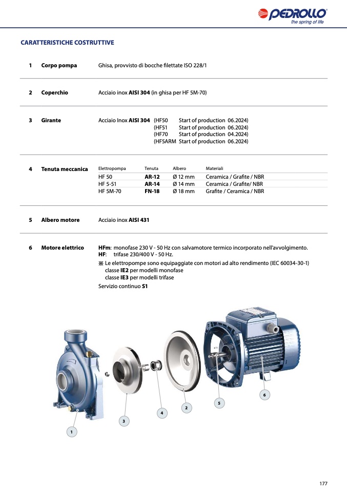 Acciaio inox AISI 304 (in ghisa per HF 5M-70)