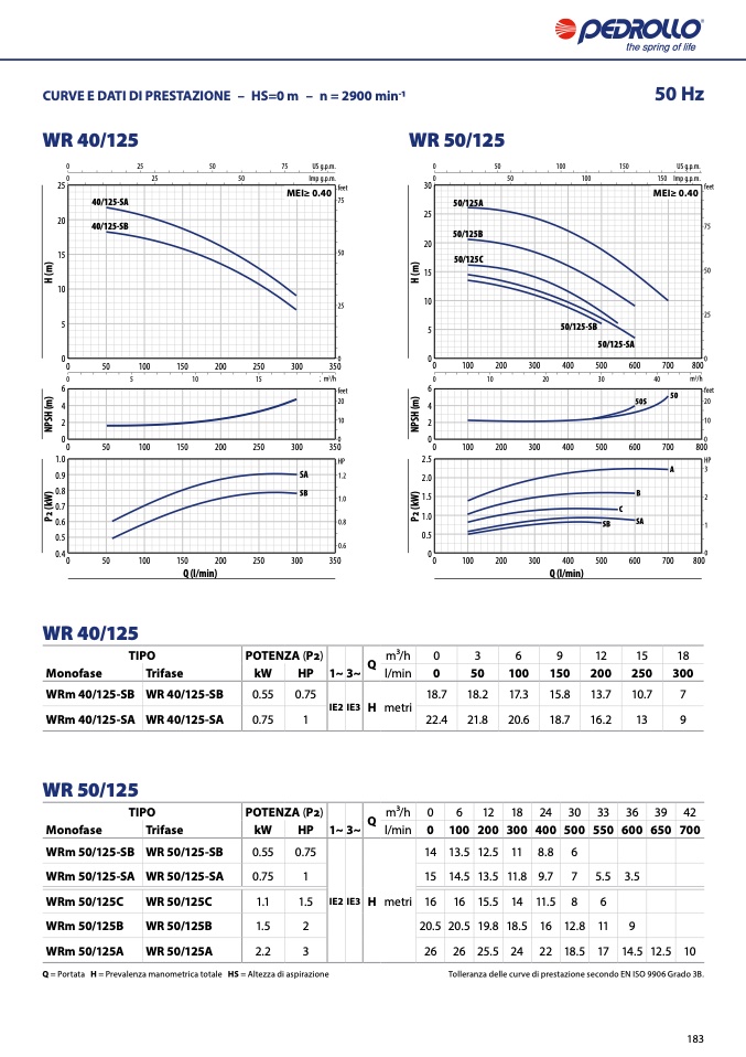 Tolleranza delle curve di prestazione secondo EN ISO 9906 Grado 3B.