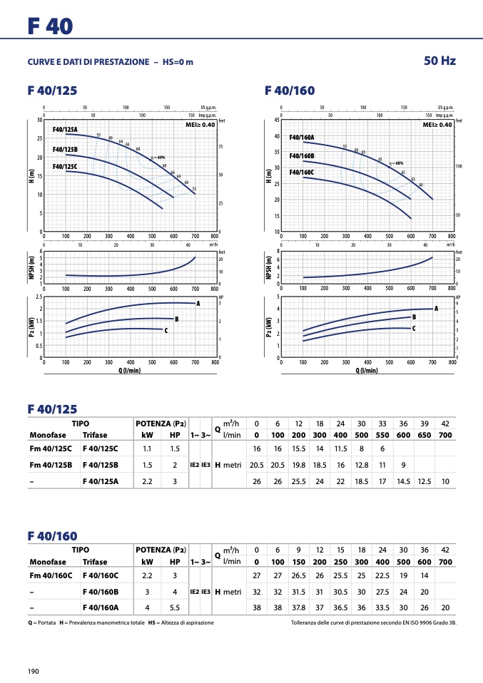 Tolleranza delle curve di prestazione secondo EN ISO 9906 Grado 3B.