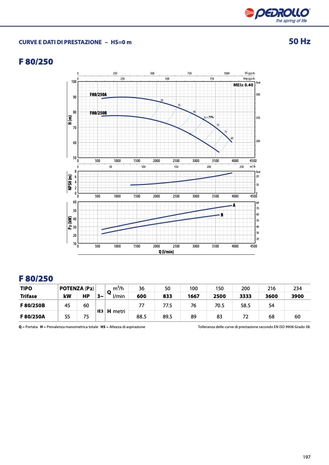 Tolleranza delle curve di prestazione secondo EN ISO 9906 Grado 3B.