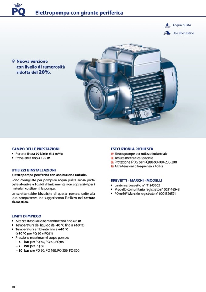 ※ Protezione IP X5 per PQ 80-90-100-200-300