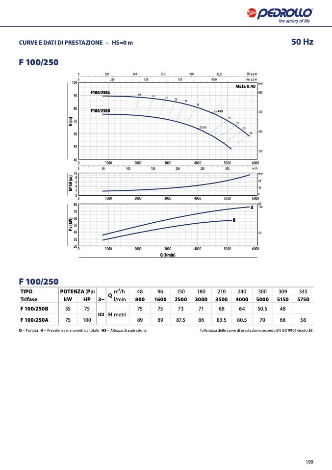 Tolleranza delle curve di prestazione secondo EN ISO 9906 Grado 3B.