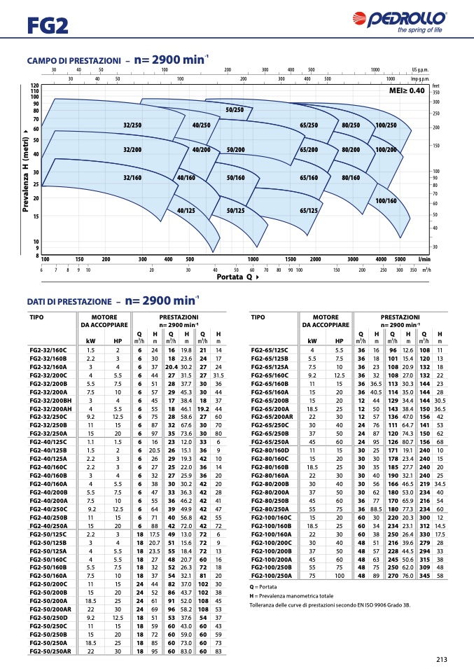Tolleranza delle curve di prestazioni secondo EN ISO 9906 Grado 3B.