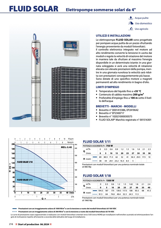 Le curve di prestazione sopra rappresentate si realizzano con moduli fotovoltaici orientati verso SUD (verso NORD per installazioni nell'emisfero australe) ed ottimizzandone l'an-