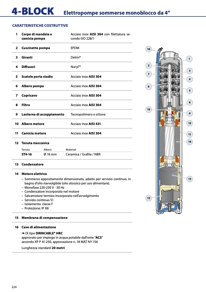 – Sommerso appositamente dimensionato, adatto per servizio continuo, in