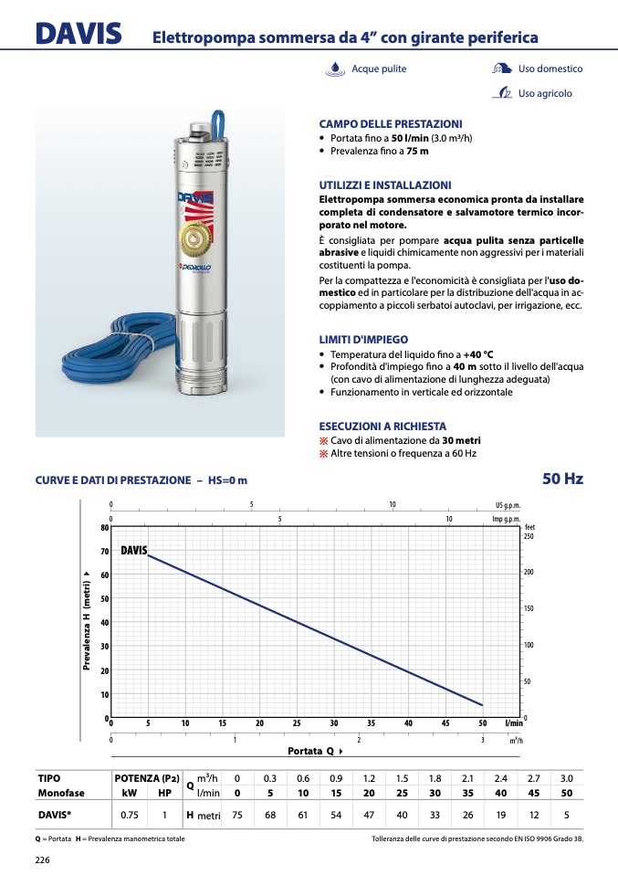 Prevalenza fino a 75 m