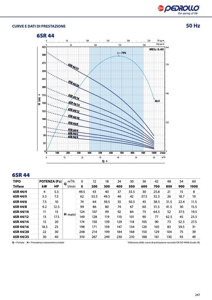 Tolleranza delle curve di prestazione secondo EN ISO 9906 Grado 3B.