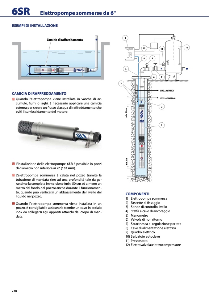 ※ L'installazione delle elettropompe 6SR è possibile in pozzi