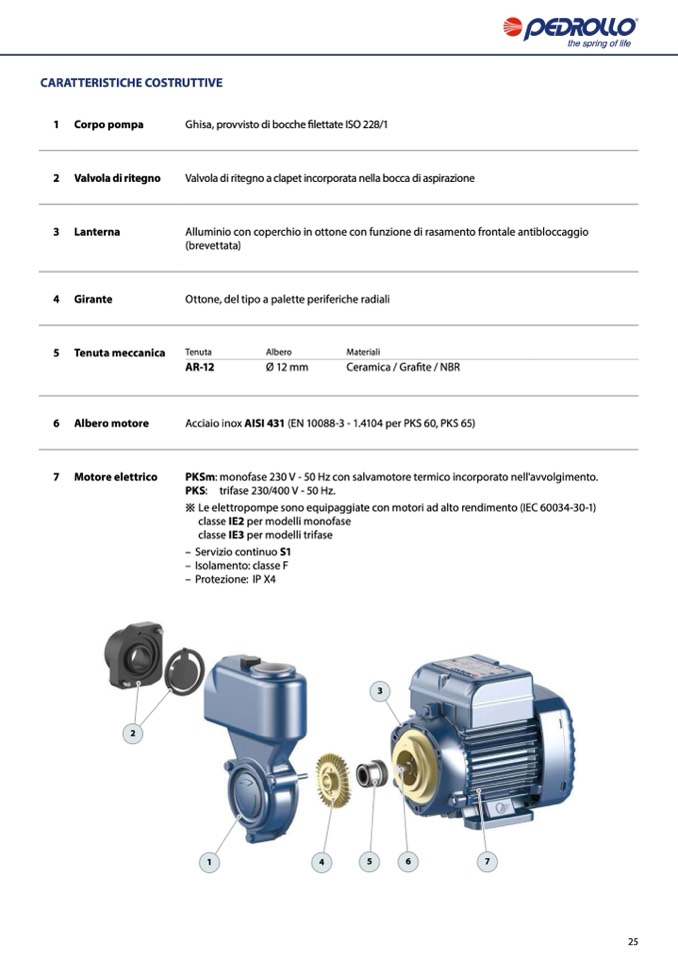 PKSm: monofase 230 V - 50 Hz con salvamotore termico incorporato nell'avvolgimento.