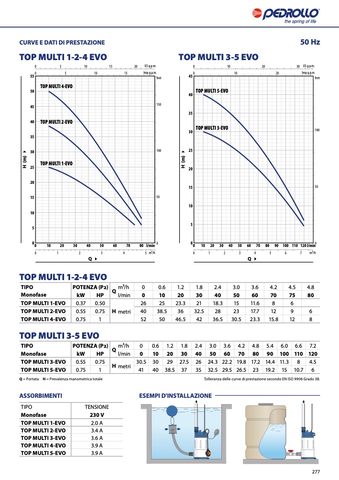 Tolleranza delle curve di prestazione secondo EN ISO 9906 Grado 3B.