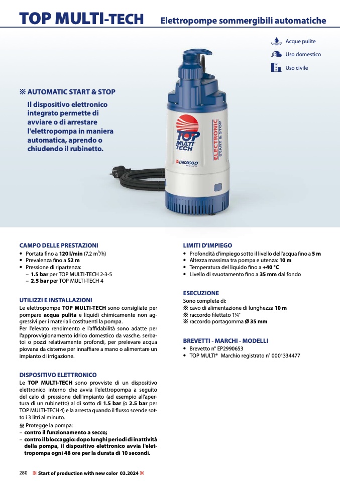 Le elettropompe TOP MULTI-TECH sono consigliate per