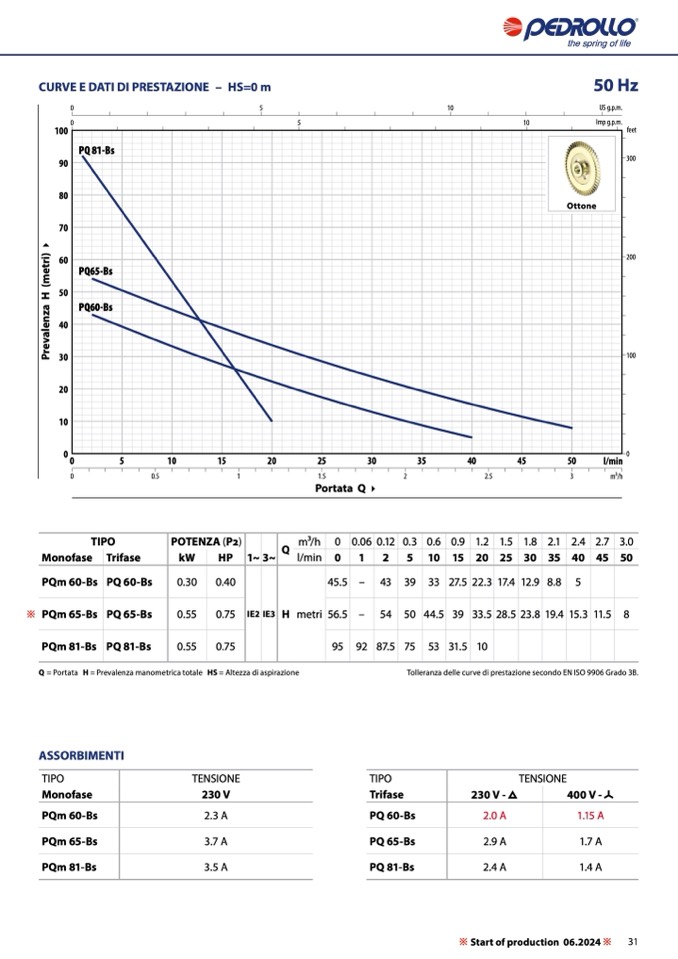 Tolleranza delle curve di prestazione secondo EN ISO 9906 Grado 3B.