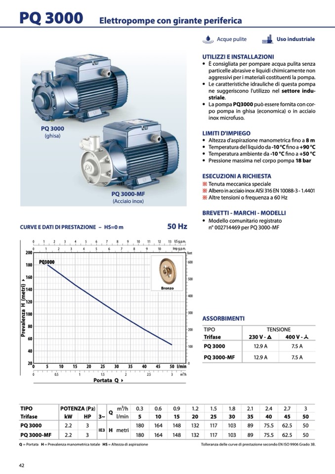 Tolleranza delle curve di prestazione secondo EN ISO 9906 Grado 3B.