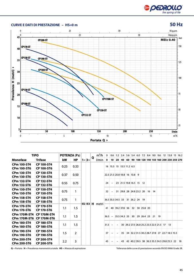 Tolleranza delle curve di prestazione secondo EN ISO 9906 Grado 3B.
