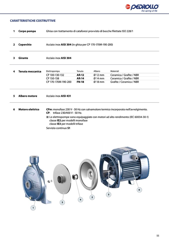 Acciaio inox AISI 304 (in ghisa per CP 170-170M-190-200)