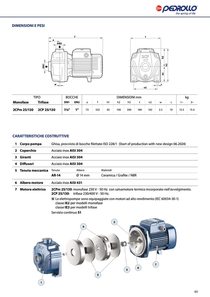 2CP 25/130: trifase 230/400 V - 50 Hz.