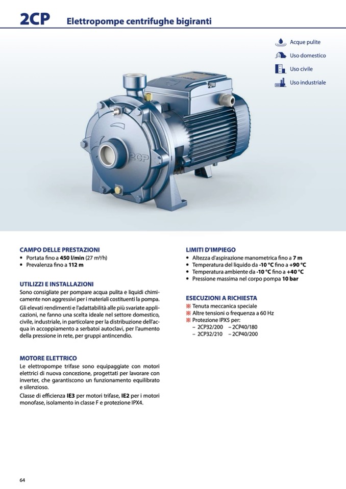 Sono consigliate per pompare acqua pulita e liquidi chimi-