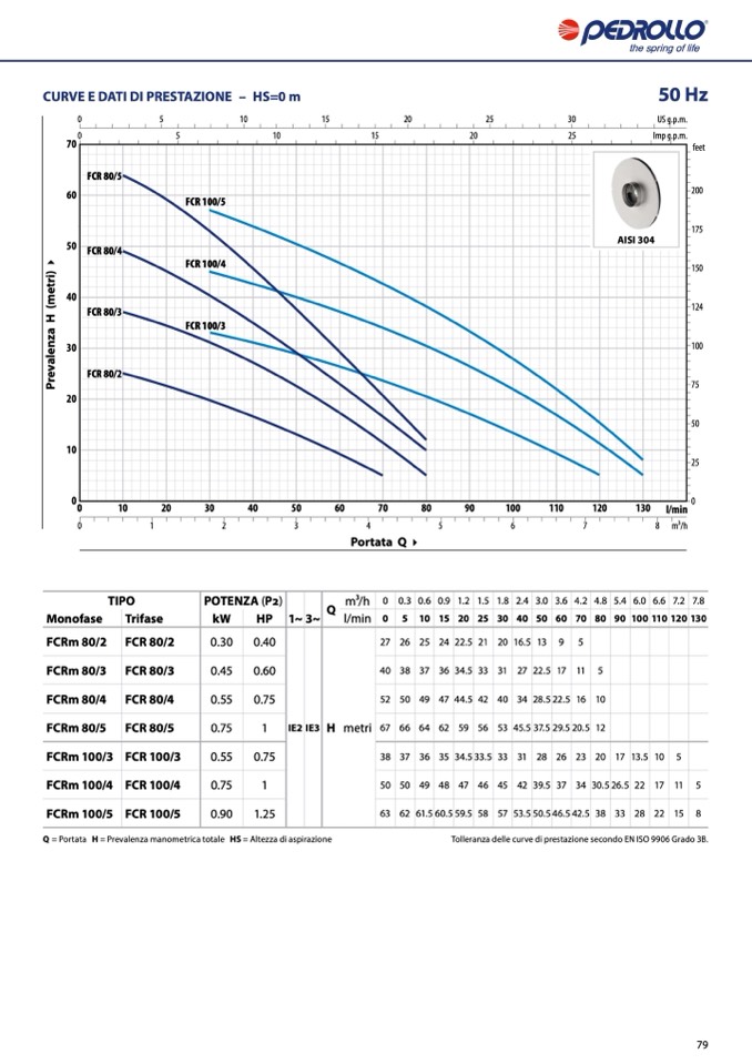 Q = Portata H = Prevalenza manometrica totale HS = Altezza di aspirazione