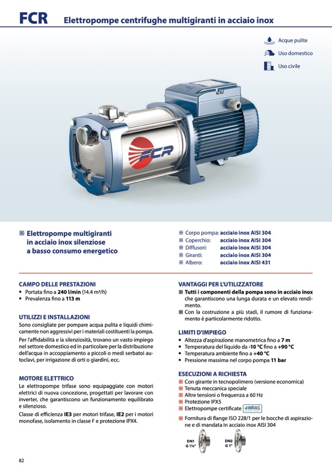 Sono consigliate per pompare acqua pulita e liquidi chimi-