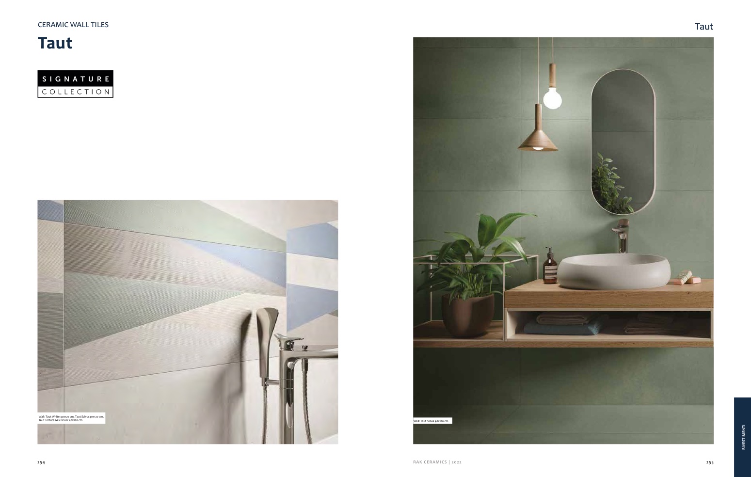 Wall: Taut White 40x120 cm, Taut Salvia 40x120 cm,