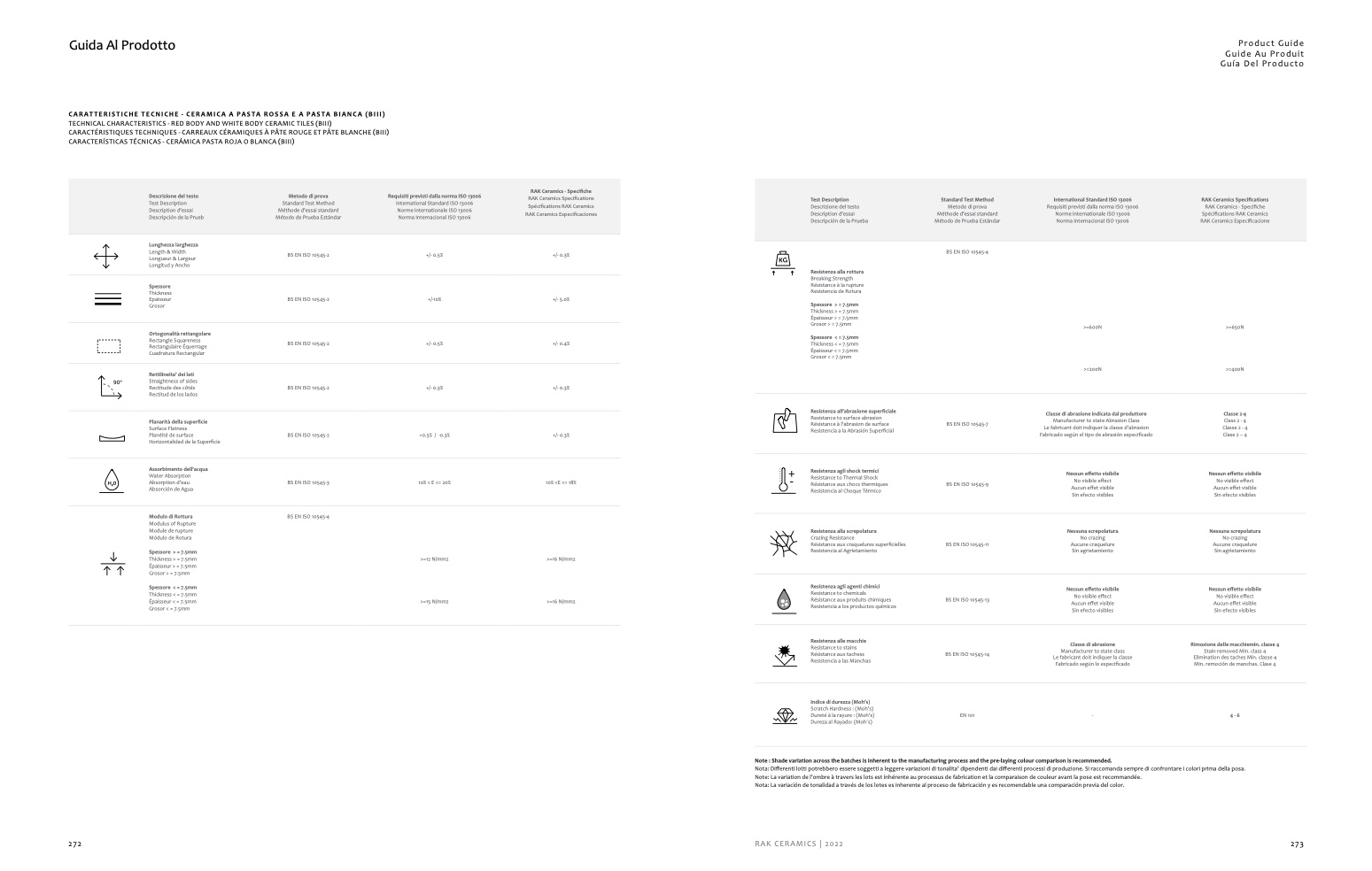 TECHNICAL CHARACTERISTICS - RED BODY AND WHITE BODY CERAMIC TILES (BIII)
