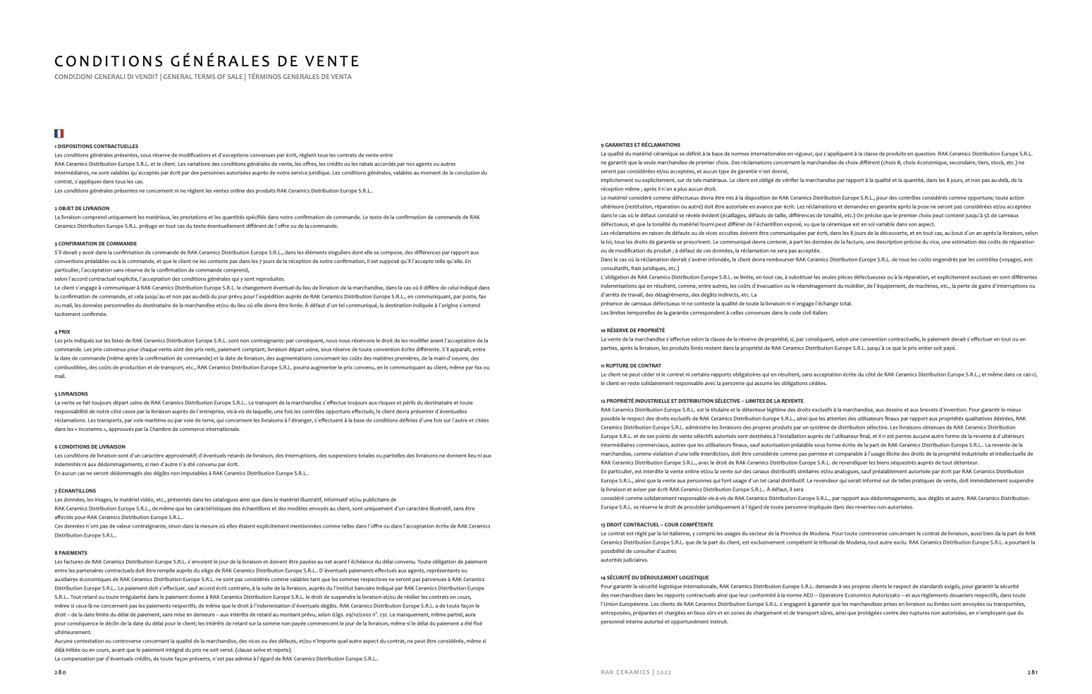 RAK Ceramics Distribution Europe S.R.L. et le client. Les variations des conditions générales de vente, les offres, les crédits ou les rabais accordés par nos agents ou autres
