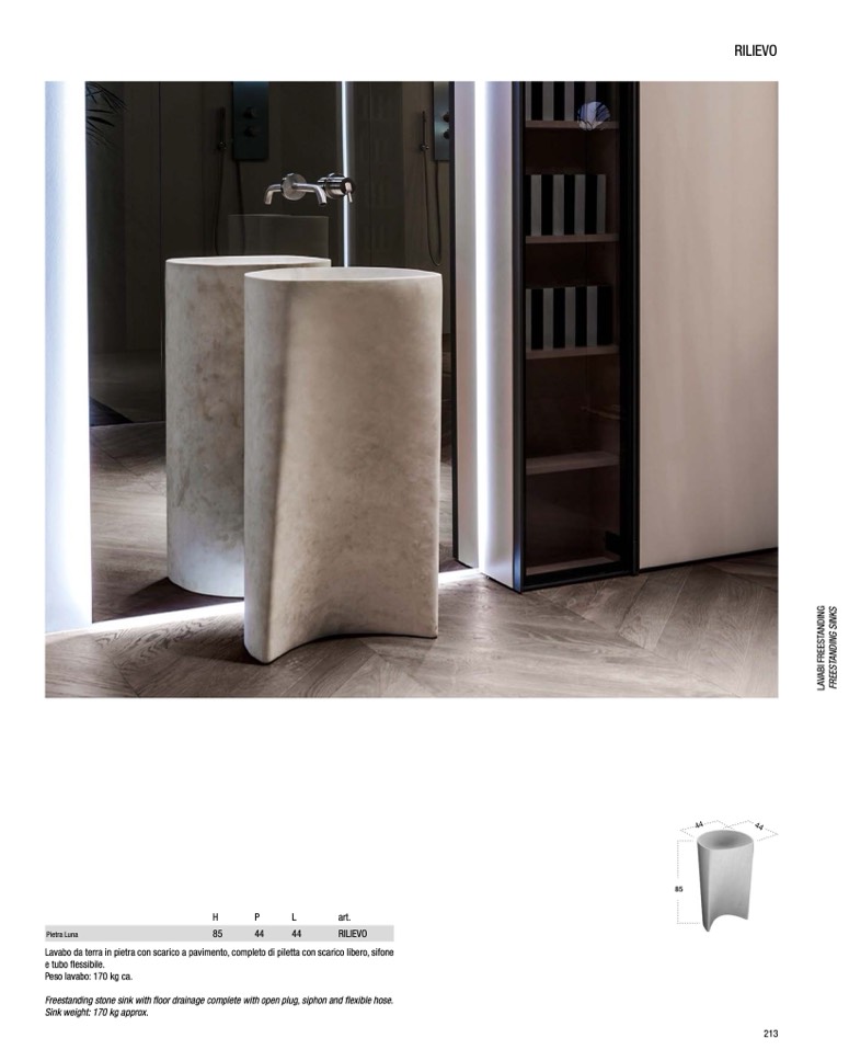 Peso lavabo: 170 kg ca.