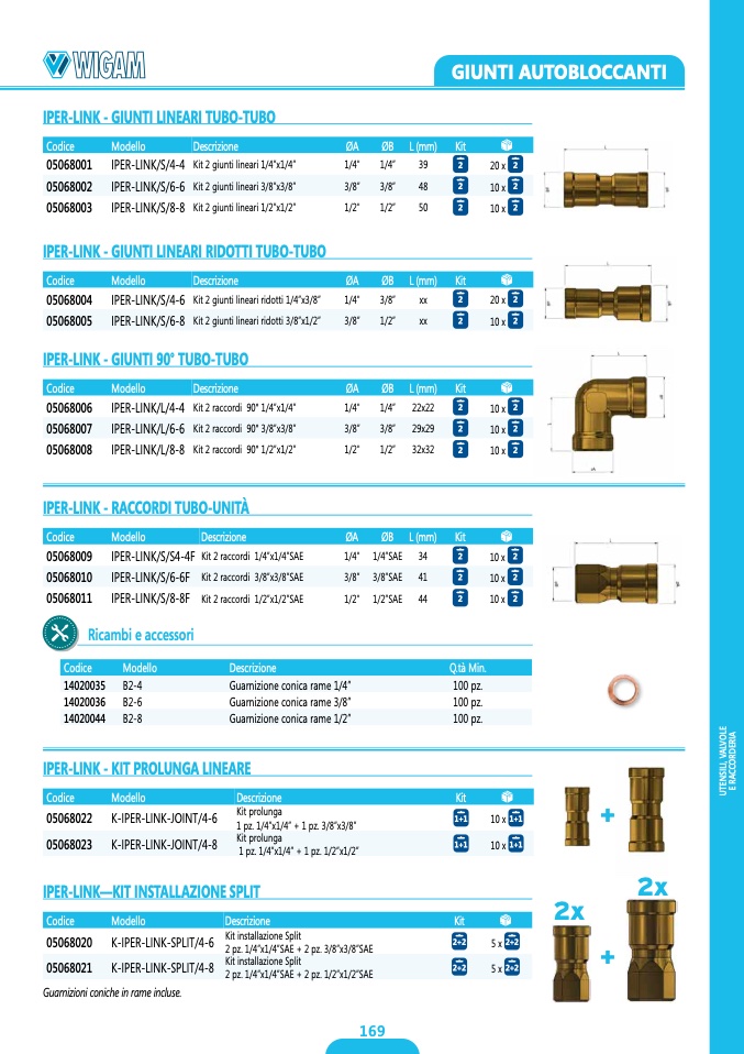 2 pz. 1/4”x1/4”SAE + 2 pz. 3/8”x3/8”SAE