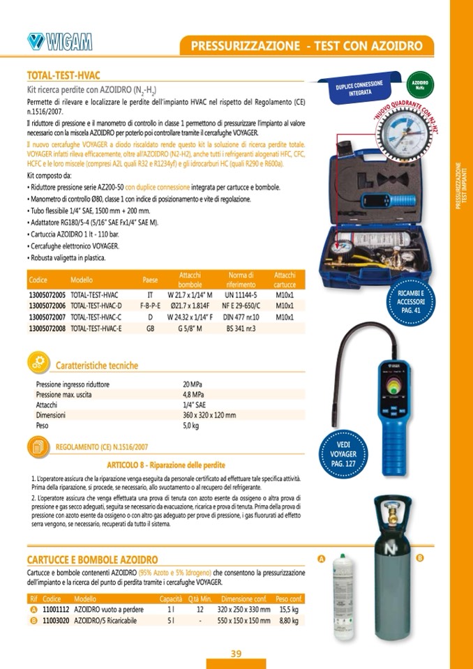 VOYAGER infatti rileva efficacemente, oltre all’AZOIDRO (N2-H2), anche tutti i refrigeranti alogenati HFC, CFC,