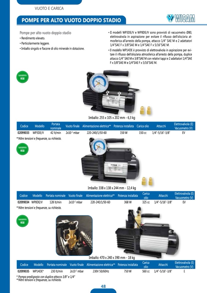 • II modelli WP3DE/V e WP8DE/V sono provvisti di vacuometro Ø80,