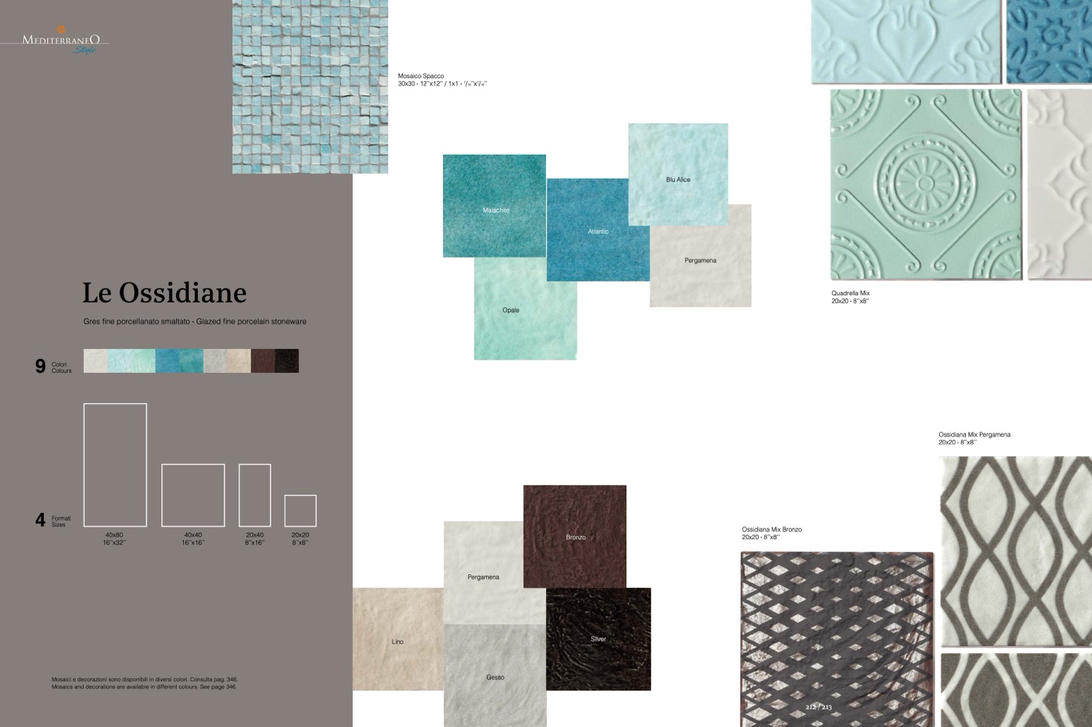 Mosaici e decorazioni sono disponibili in diversi colori. Consulta pag. 346.